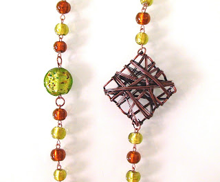 Fio com corrente, contas de vidro, pérolas falsas e contas cloisoné.